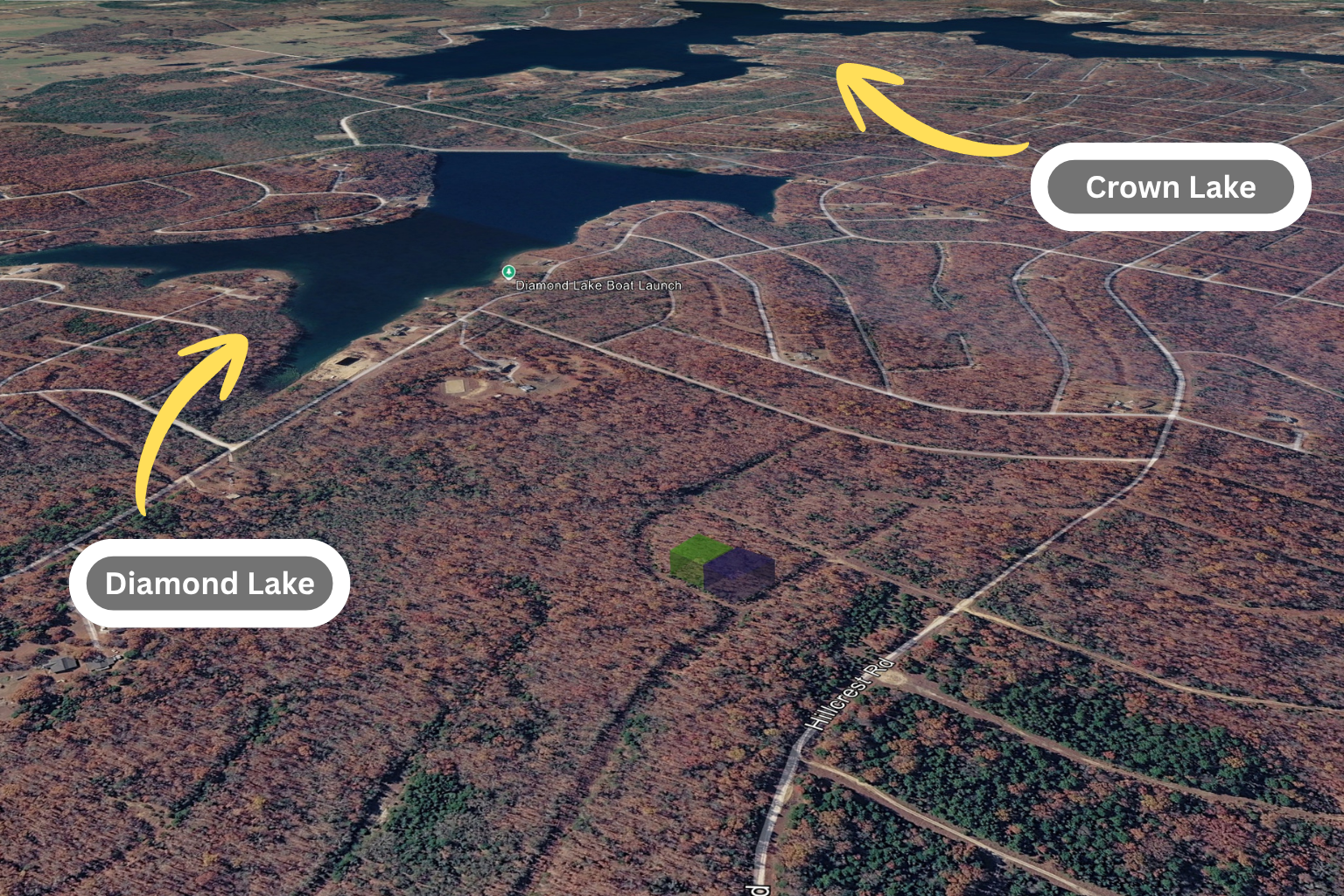 The location is a key advantage. Within just a few minutes, you can reach Diamond Lake, known for fishing, boating, and relaxing by the water. Nearby towns provide basic services, groceries, and dining options, while still maintaining the quiet character of the region.